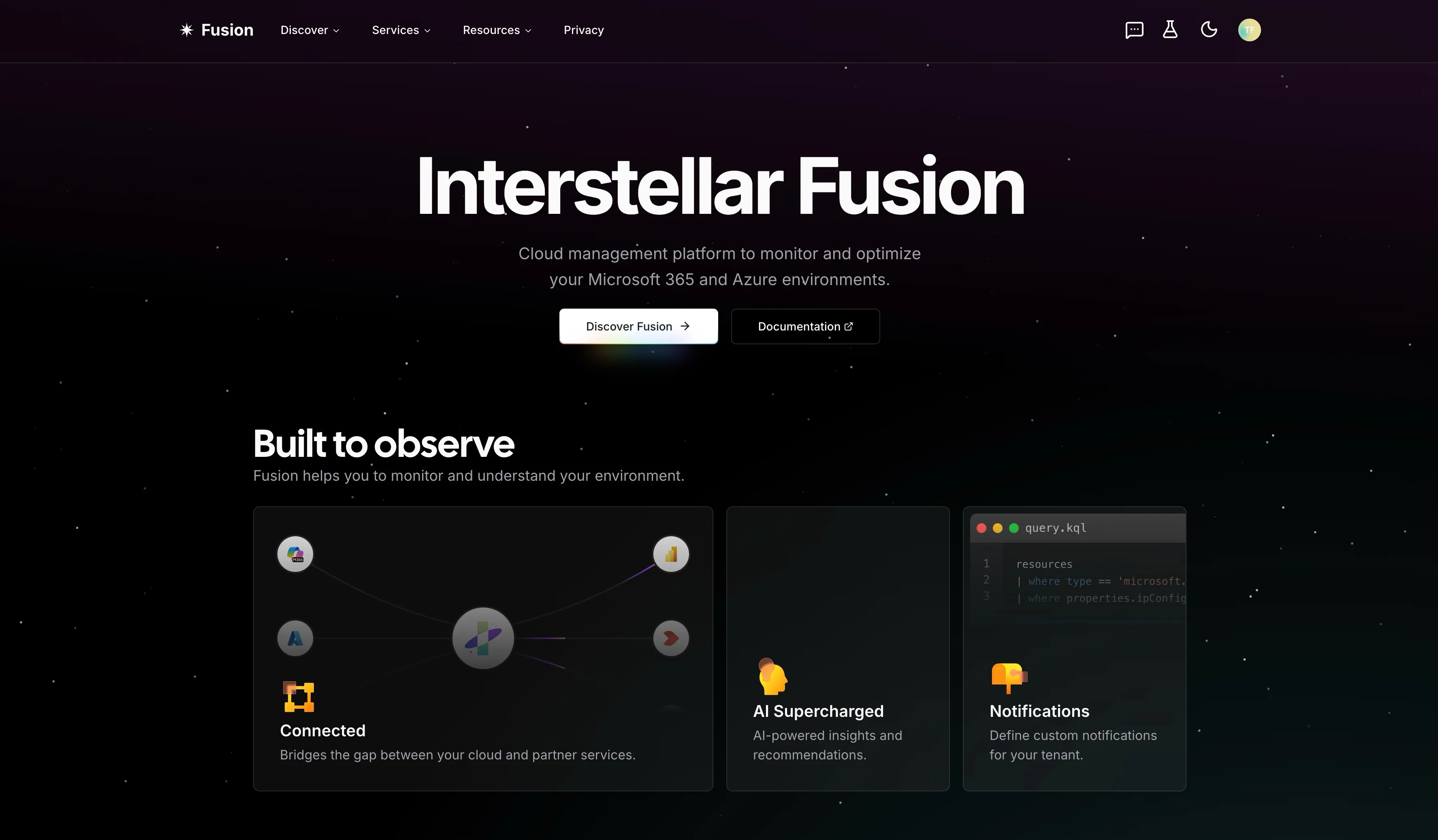 Fusion integrates with AFAS, TOPdesk, Autotask, Datto RMM, N-central, Insocial, and more through a platform built from an API, a frontend, and an Azure Functions data aggregation backend.